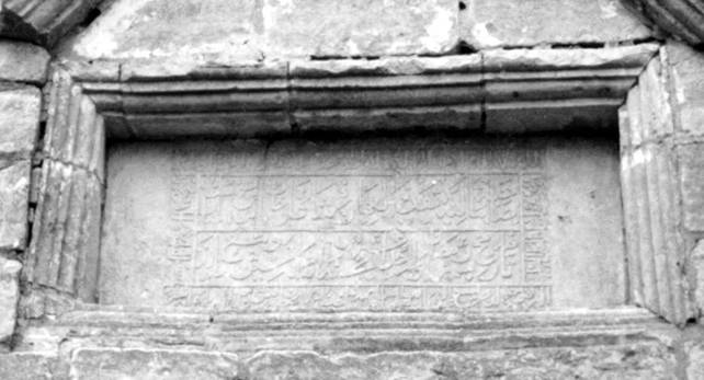 Над дверью, ведущей в большую комнату, находится каменная доска, на которой в прямоугольной рамке арабскими словами выбито две строки: